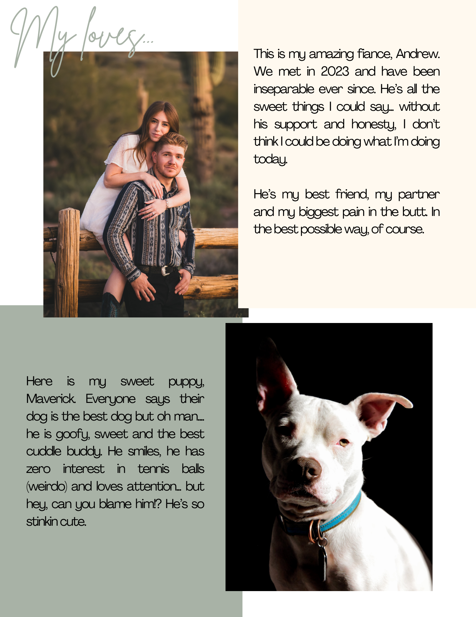 My goal when taking photos is to get the true love and passion, genuine smiles and laughs. The end result is of course, the excitement of when the photos are received by the customer is my favorite!!