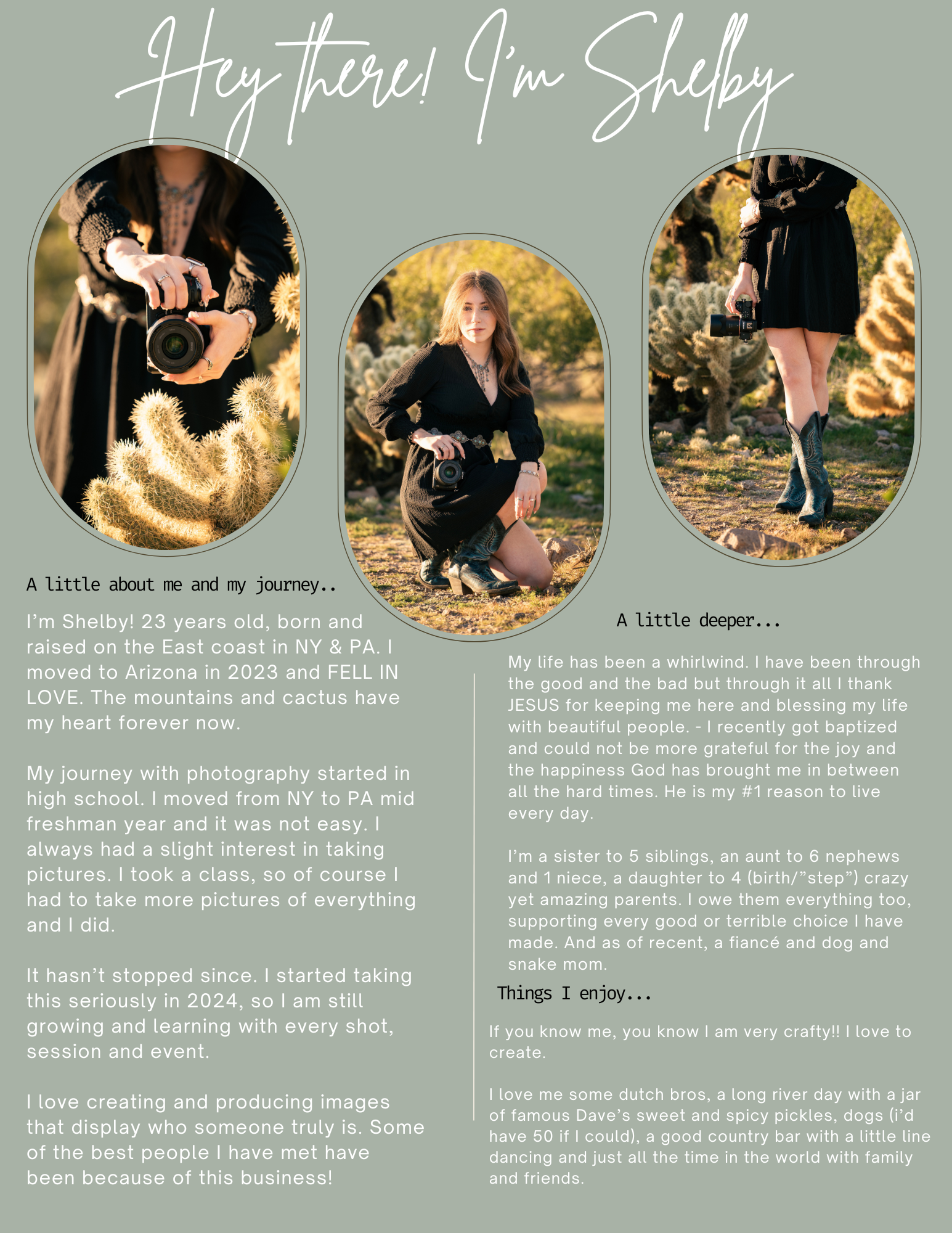 Thank you for taking the time to read about me and my journey and I hope you consider me for your photography needs! God bless.